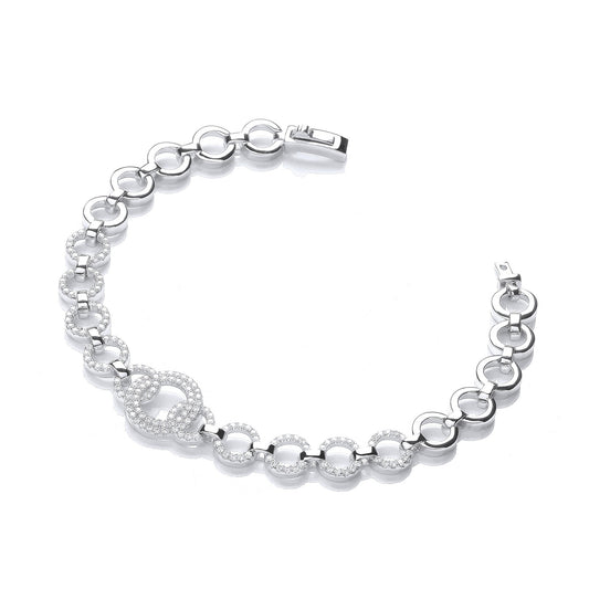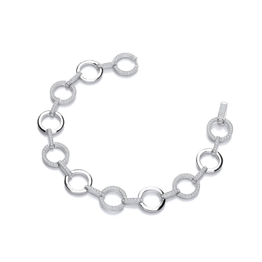 Sterling Silver Circles Plain & Cubic Zirconia Ladies Bracelet
