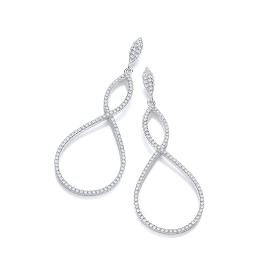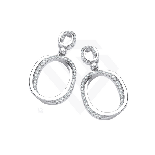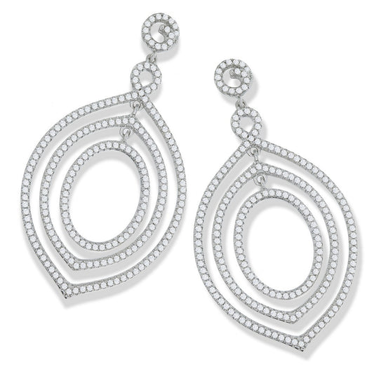 Sterling Silver Micro Pavé Oval Long Drop Cubic Zirconia Earrings