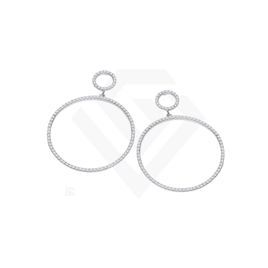 Stylish sterling silver long drop earrings with an elegant oval design, adorned with micro pavé-set...