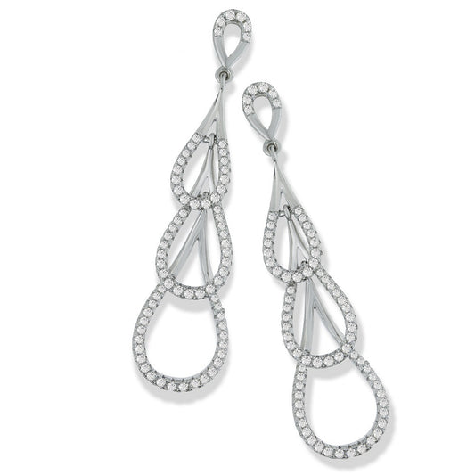 Glamorous sterling silver fancy drop earrings featuring a multi-layered open design, beautifully embellished with micro...