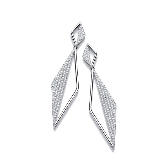 Sterling Silver Diamond Shaped Cubic Zirconia Drop Earrings