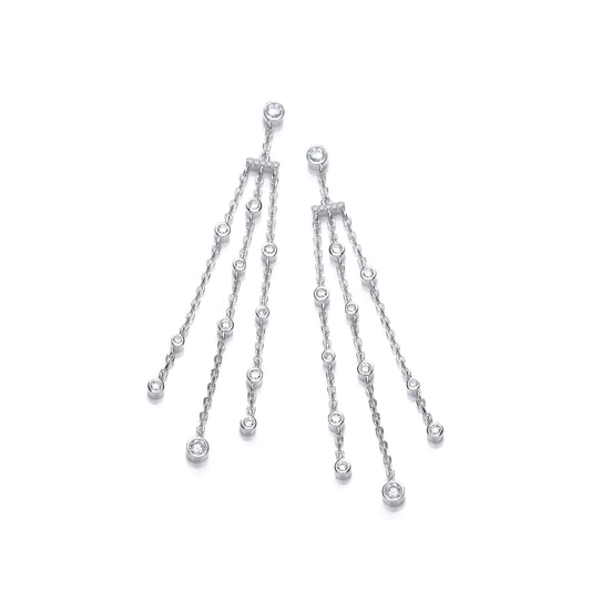 Sterling Silver Three Strings Rubover Cubic Zirconia Drop Earrings