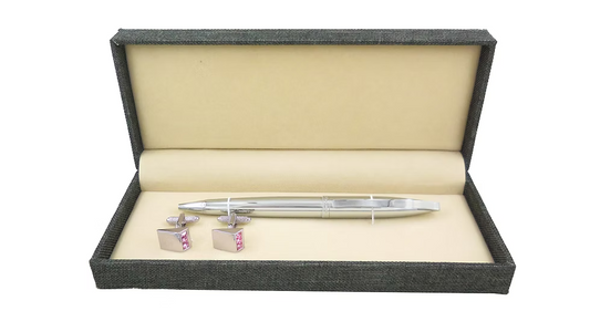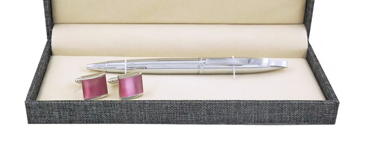 'Dorchester' Ballpoint pen & a pair of dusty pink cufflinks set. Supplied in a velvet-lined...