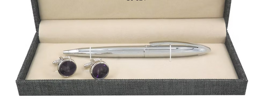 Dorchester' Ballpoint pen & a pair of Violet crystals cufflinks set. Supplied in a velvet-lined...