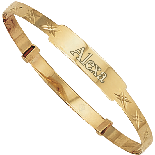 9ct Yellow Gold Diamond-Cut Expandable ID Baby Bangle