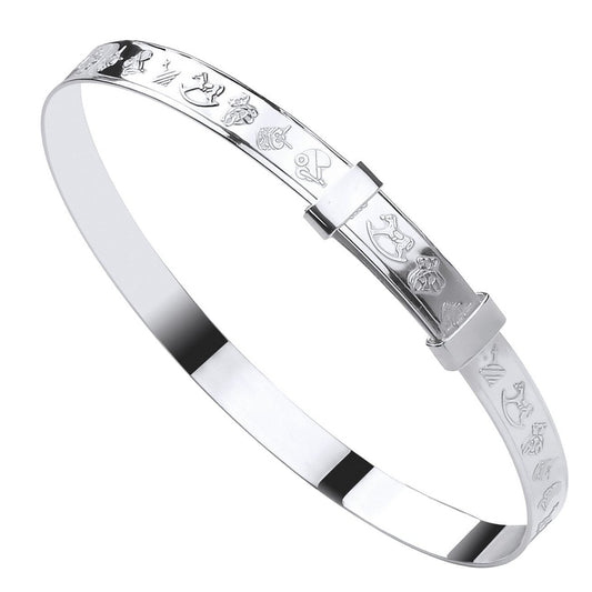 Sterling Silver 925 With Nursery Rhyme features - Horse and Carriage , Expandable Baby Bangle