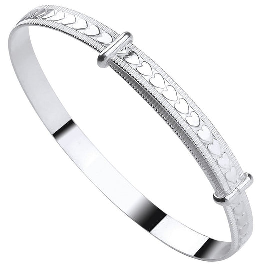 Sterling Silver 925 With Embossed Hearts Expandable Baby Bangle