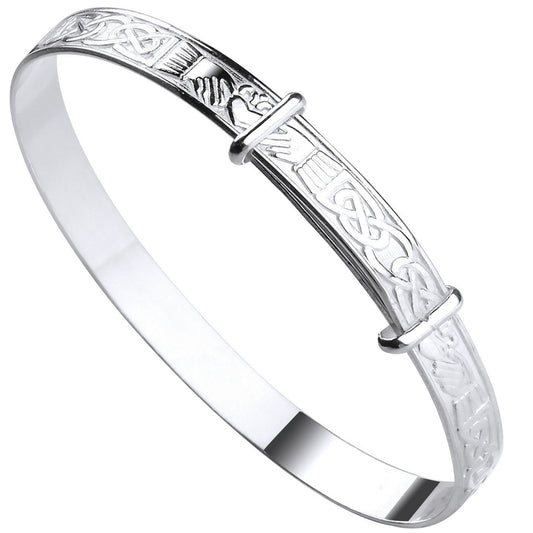 Sterling Silver 925 Celtic Claddagh Pattern Expandable Baby Bangle