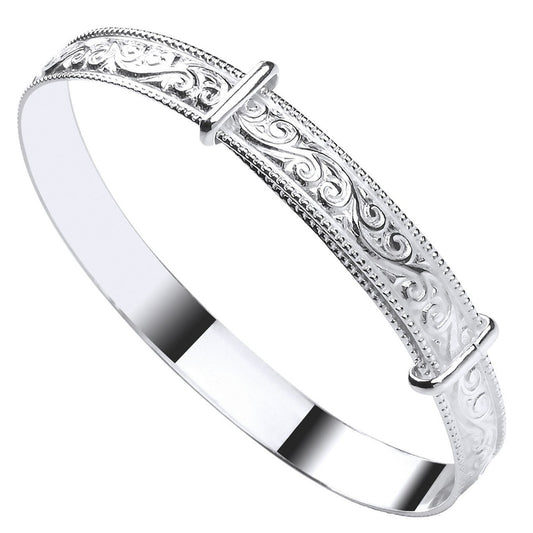 Sterling Silver 925 Expandable Baby Bangle with Beaded Edge Detail
