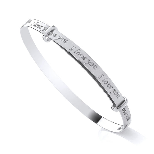 Sterling Silver Ladies "I Love You" Expanding Bangle