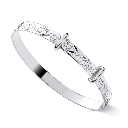 Sterling Silver 925 Expandable Baby Bangle – Floral Engraved Design