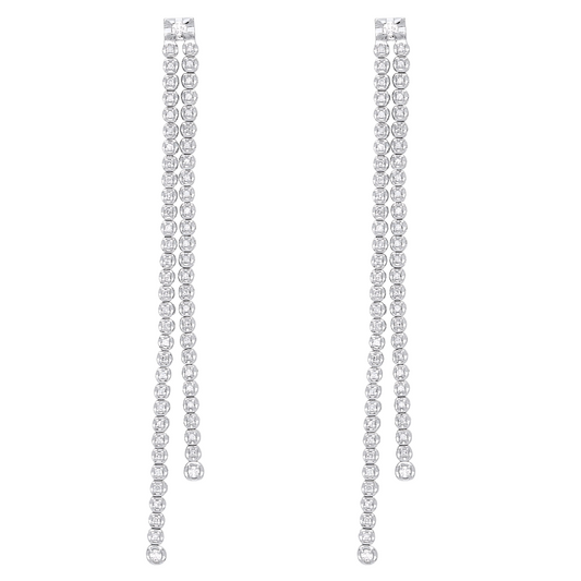 A Pair of Double Strand Diamond Drops Earrings, featuring 0.5ct of Natural Round Brilliants. The...