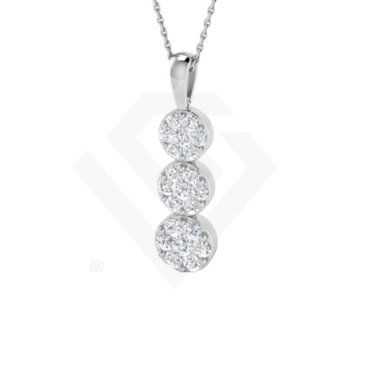 Modern elegance meets timeless sparkle in this 9ct White Gold Triple Cluster Pendant, featuring 21...