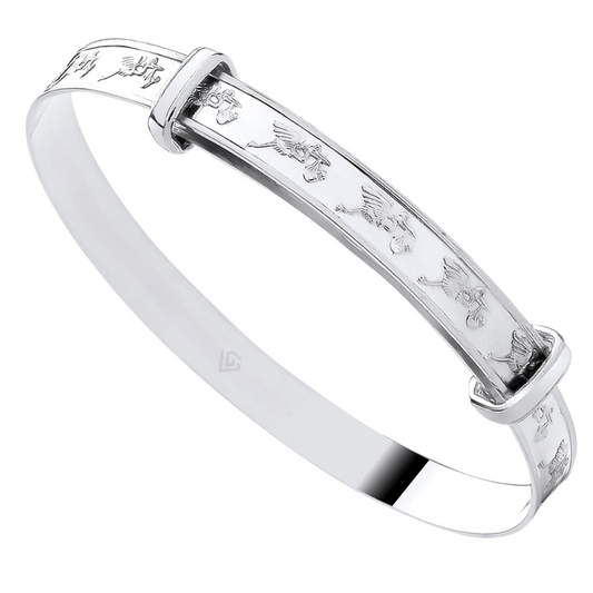 Sterling Silver 925 Expandable Baby Bangle with Cherub Motif Pattern