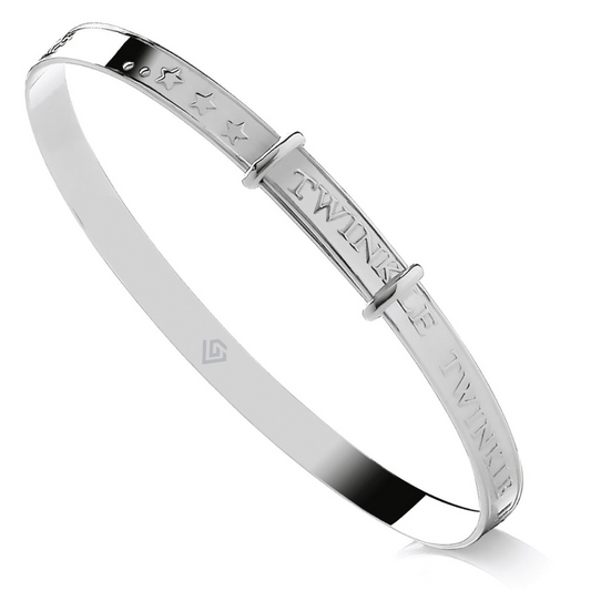 Sterling Silver 925 Expandable Baby Bangle – “Twinkle Twinkle” Engraved with Stars