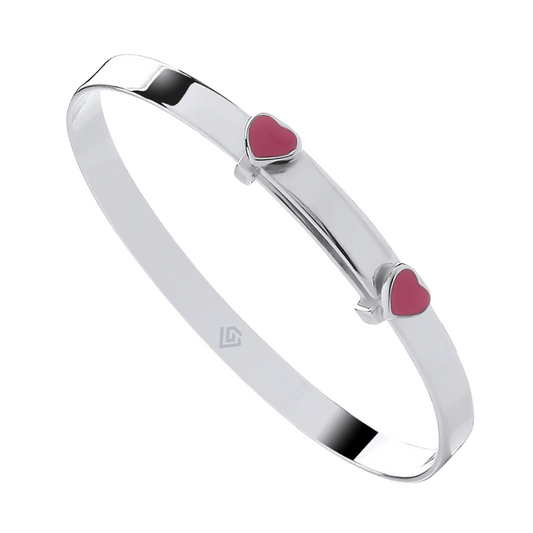 Sterling Silver 925 Expandable Baby Bangle with Pink Enamel Hearts Add a touch of sweetness...