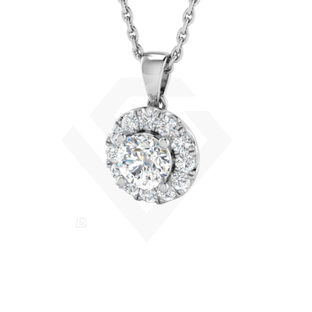 Add timeless sparkle to your jewellery collection with this elegant 9ct White Gold Halo Pendant, featuring 13 round brilliant lab-grown diamonds with a total gem weight of 0.5ct. The centre diamond is encircled by a dazzling halo that amplifies its brilliance, creating a captivating light display from every angle.