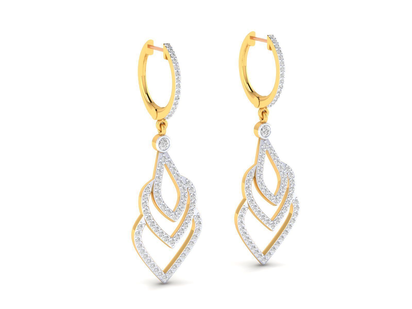 1.1ct Long Diamond Drop Earrings In 14ct Yellow Gold