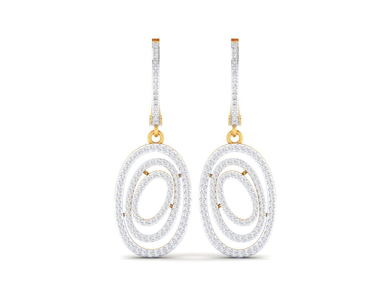 A Pair of fancy Oval Shape Diamond Drops Earrings, featuring 1.4ct of Lab Created Round Brilliants in Yellow Gold.
