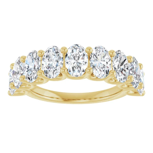 Celebrate your everlasting love with this exquisite 3.5 carat diamond half eternity ring. Meticulously crafted in gleaming Yellow Gold, this elegant piece showcases a row of dazzling Oval brilliant-cut diamonds, each perfectly matched for exceptional sparkle and brilliance. Expertly secured in a classic claw setting, the diamonds catch the light beautifully, creating a timeless and sophisticated look.