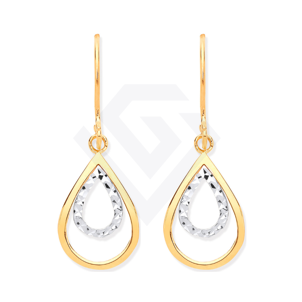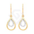 9ct Yellow & White Gold Teardrop Shaped Hook Earrings