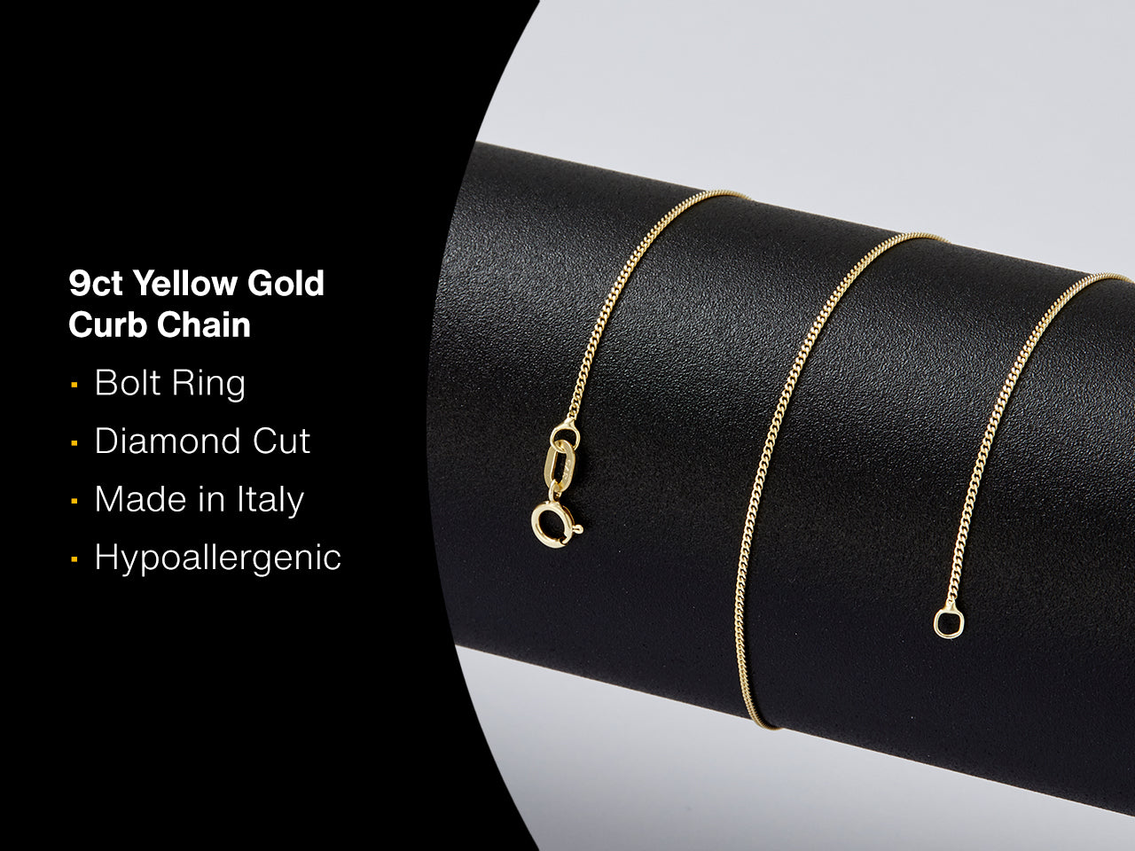 9ct Yellow Gold 0.8mm Diamond Cut Curb Chain