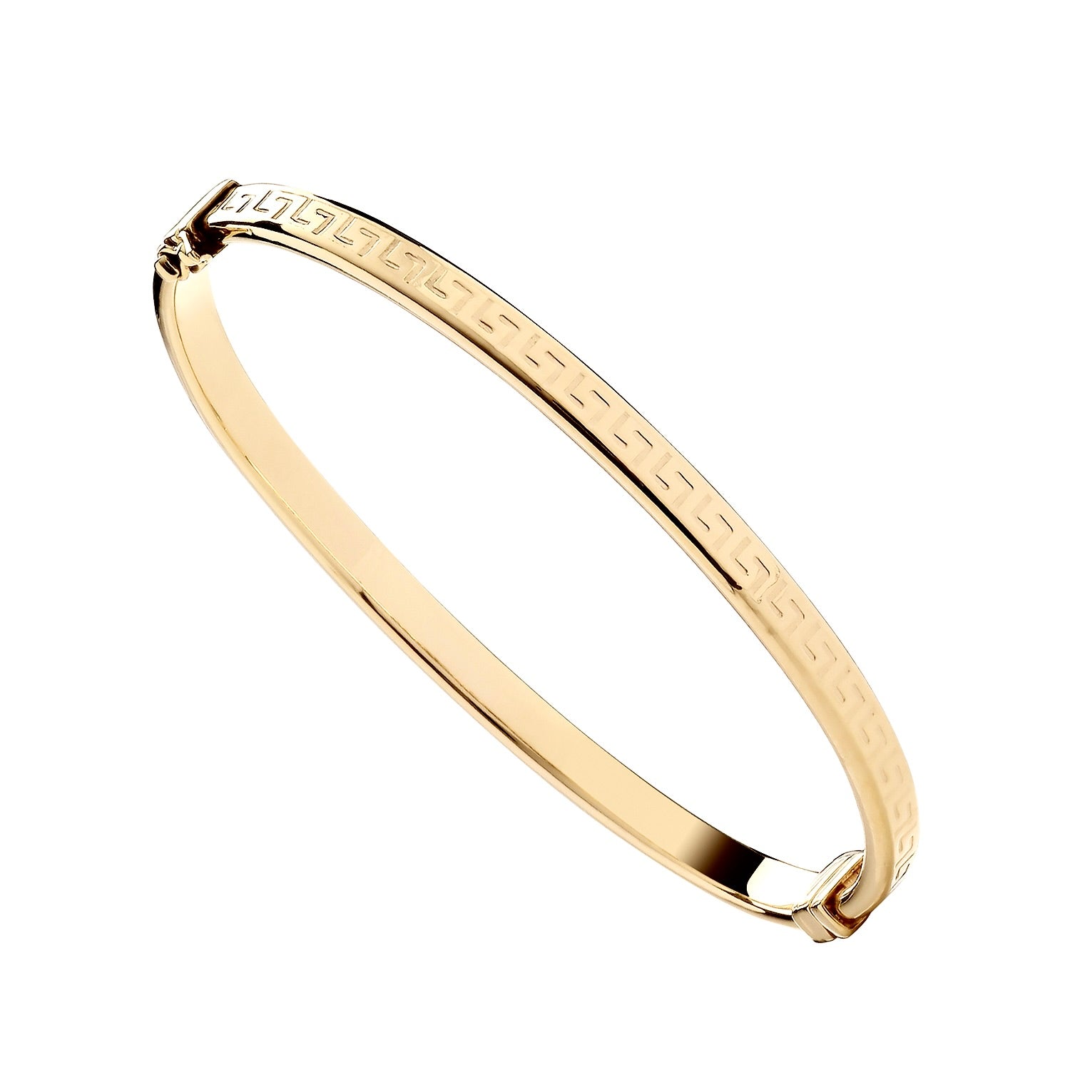 Gold on Sterling Silver Greek Key Hinged Bangle