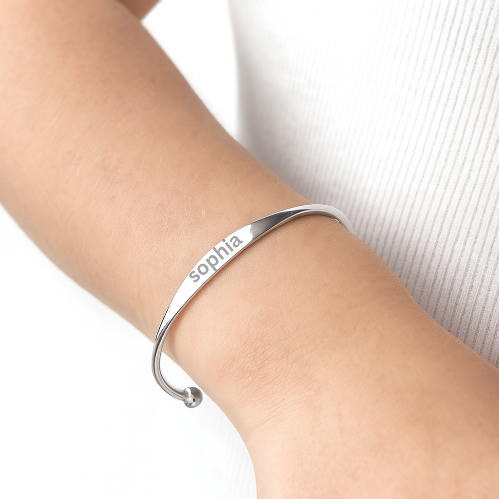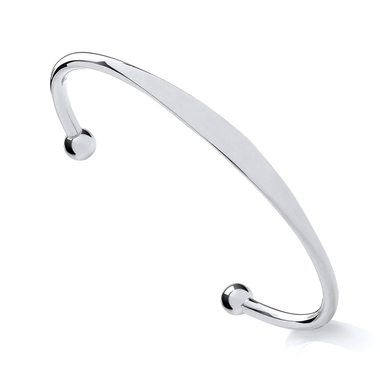 At the heart of the piece is a smooth ID plate, ideal for engraving a name, initials, or special date, turning this bracelet into a cherished keepsake. Whether you're celebrating a birthday, bat mitzvah, confirmation, or special milestone, this personalised silver bangle is a perfect and thoughtful gift.