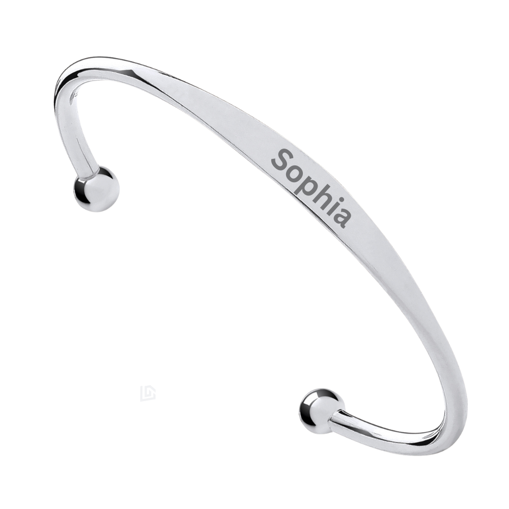 Sterling Silver Maidens ID Torque Bangle – Personalised 925 Silver Cuff Bracelet for Girls