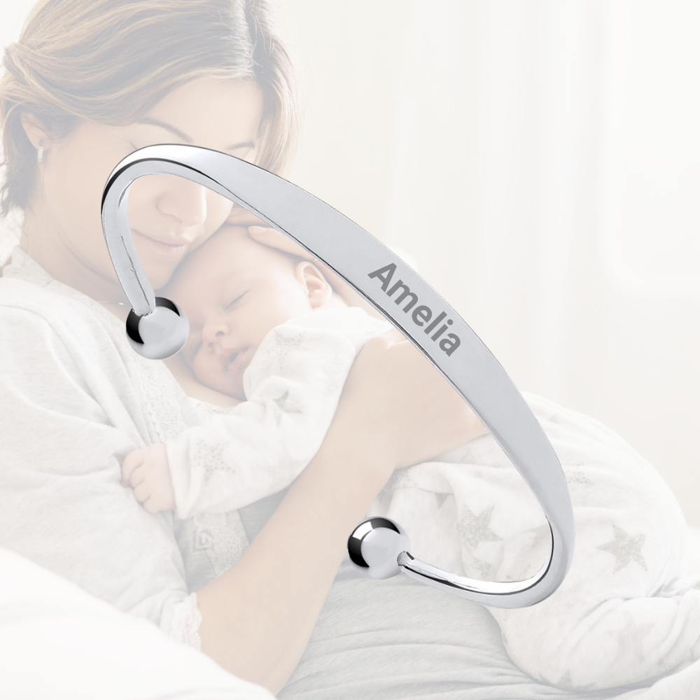 The bangle includes a smooth, engravable ID plate – ideal for personalising with a baby’s name, initials or special date, making it a meaningful gift for births, baby showers, naming ceremonies, or christenings.