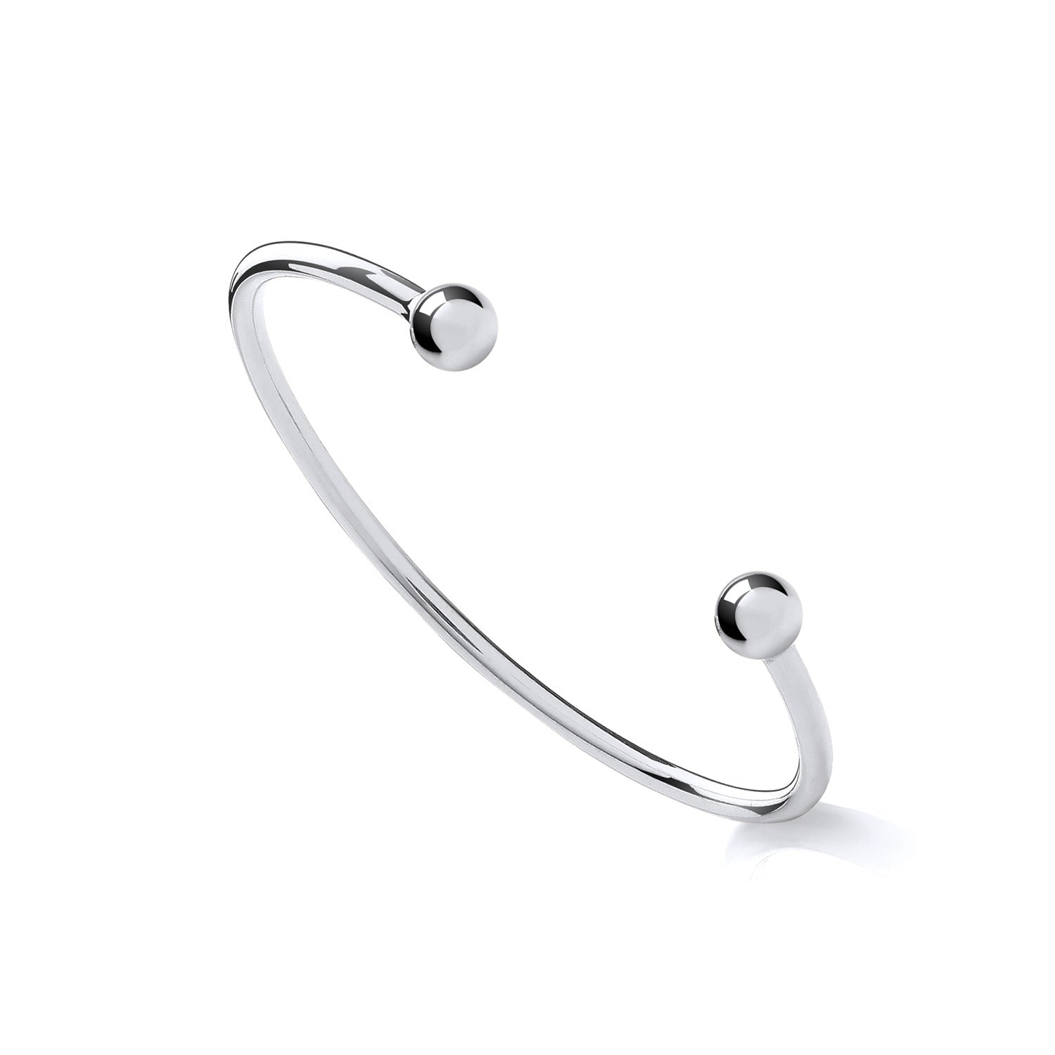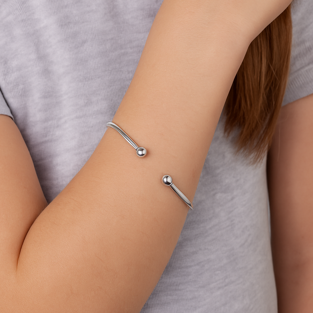 With an internal size of 50mm x 40mm and a slim 2.5mm band width, this bangle is ideal for maidens, teens, and petite wrists. The open cuff design ensures a comfortable, adjustable fit while the smooth, rounded ball ends add a classic and secure finishing touch.