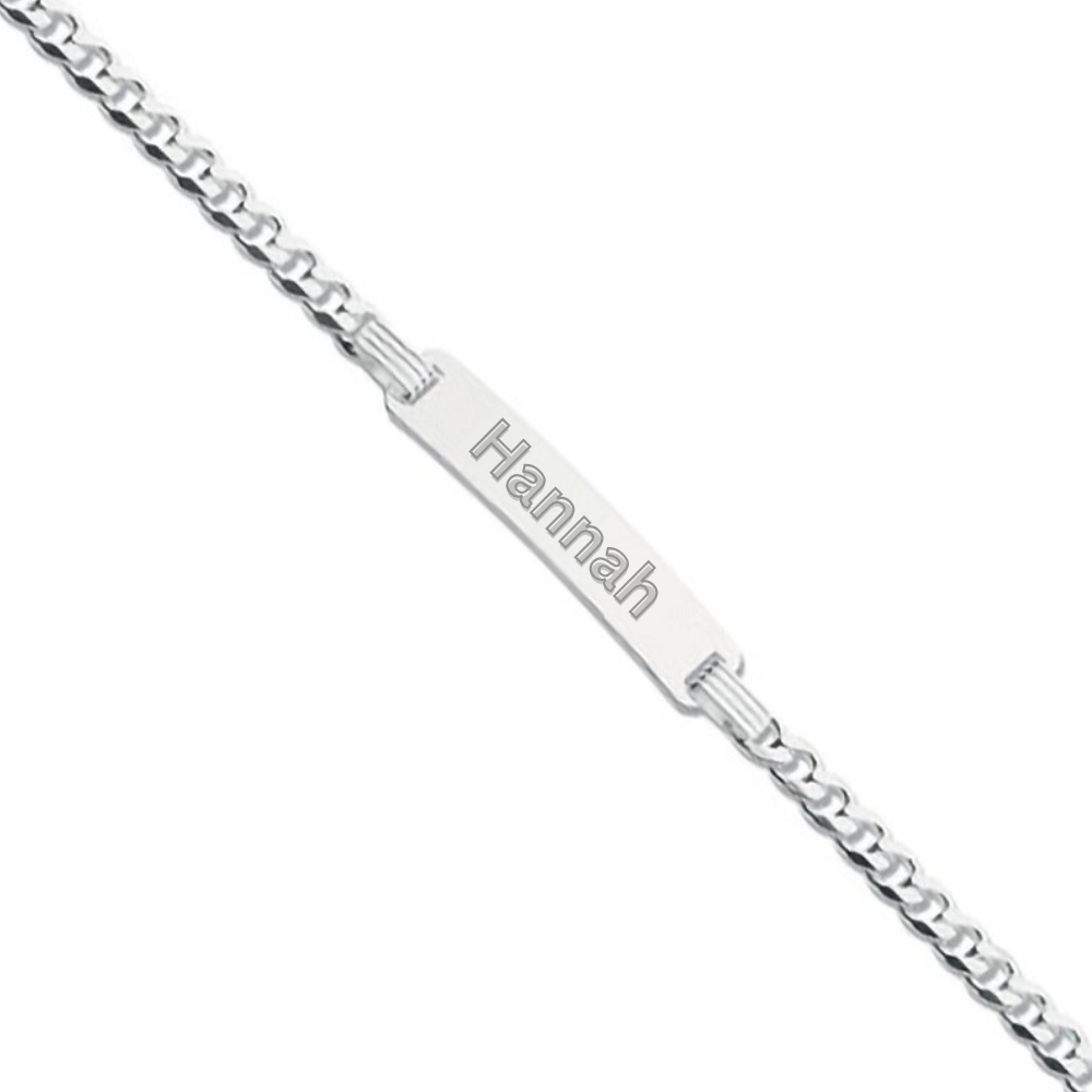 This classic ladies’ identity bracelet is crafted in polished sterling silver, measuring 7 inches for a comfortable, secure fit. The sleek ID plate is ready to be engraved with a name, date, or meaningful word of your choice — creating a truly personal keepsake or the perfect thoughtful gift.