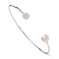 Sterling Silver Ladies Faux Pearl & CZ Bangle: