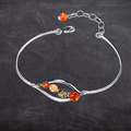 Sterling Silver Natural Baltic Amber Fancy Bracelet Bangle