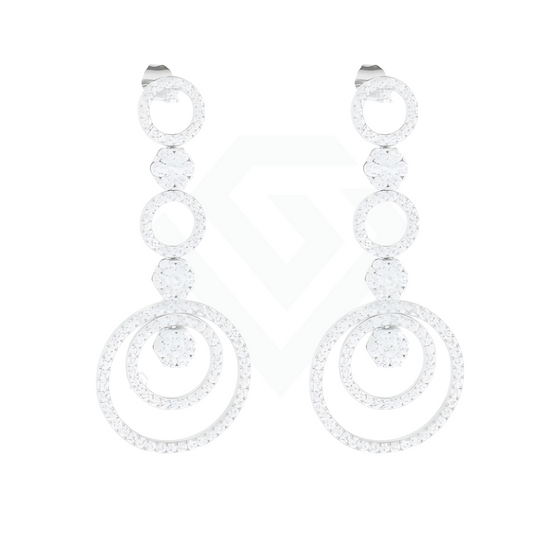 Stylish Circles Silver Drop Earrings featuring a modern double-circle design with sparkling cubic zirconia accents...
