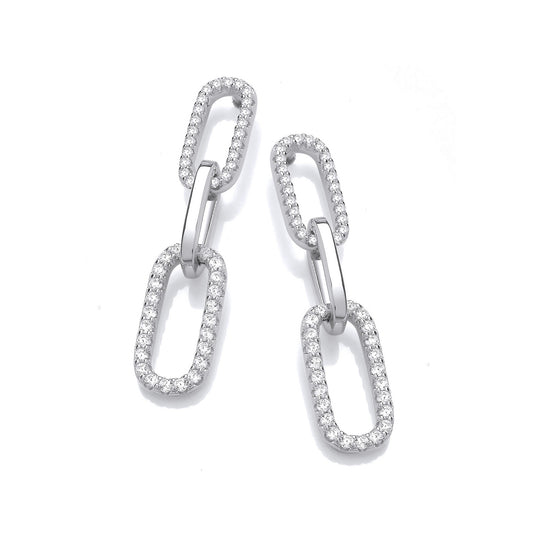 Stylish Paper Clip Micro Pave CZ Drop Earrings featuring a modern triple-link design, crafted for...