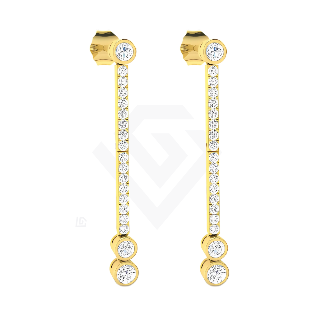 Gracefully elegant and effortlessly timeless, these exquisite drop earrings are crafted in radiant 9K yellow gold, offering a warm glow that perfectly complements their contemporary linear silhouette. Set with 38 round brilliant lab-grown diamonds (CVD), each stone is meticulously chosen for its exceptional F colour and VS clarity, delivering a total diamond weight of 0.75 carats.