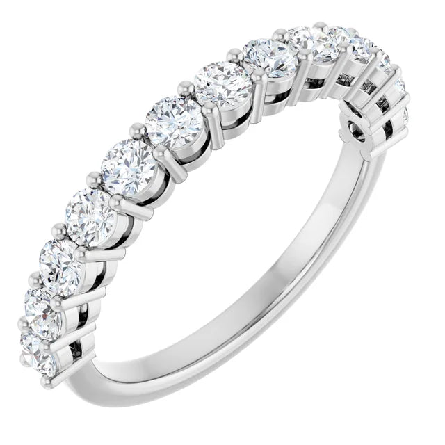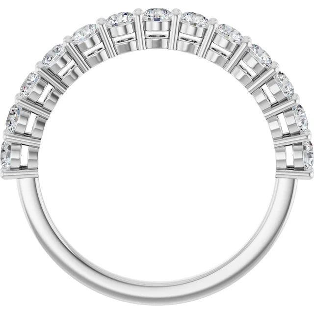טבעת הנצח המדהימה הזו במשקל 2 קראט מציגה יהלומים מסנוורים בחיתוך עגול המקיף את כל הלהקה, זמינים בזהב צהוב יוקרתי, זהב לבן או פלטינה. עיצוב הקרוסאובר המלוטש והמודרני בשילוב עם יהלומים מבריקים עגולים מציע שילוב מושלם של אלגנטיות ותחכום, מה שהופך אותו לתוספת נצחית לכל קולקציית תכשיטים.
