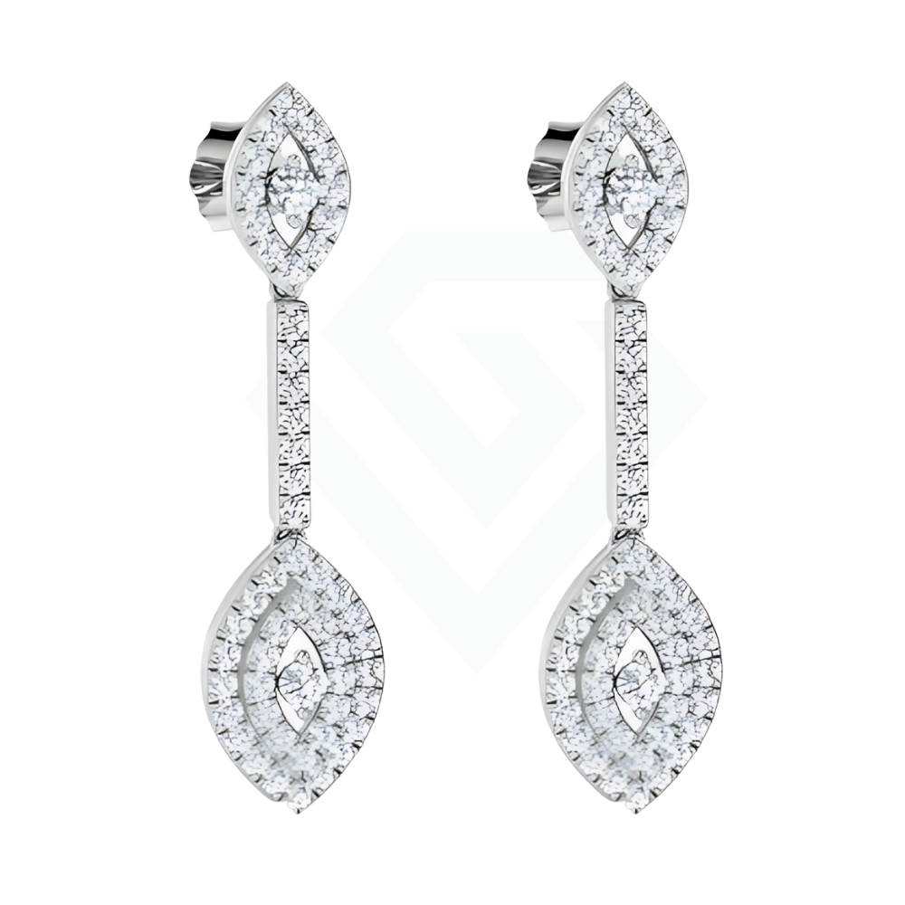 Add a contemporary touch of brilliance with these stunning 9k White Gold Drop Earrings, featuring 106 round lab-grown diamonds with a total weight of 0.79ct. Designed with a sleek vertical bar and double marquise-shaped drops, each earring is adorned with F colour, VS clarity stones that deliver captivating sparkle.