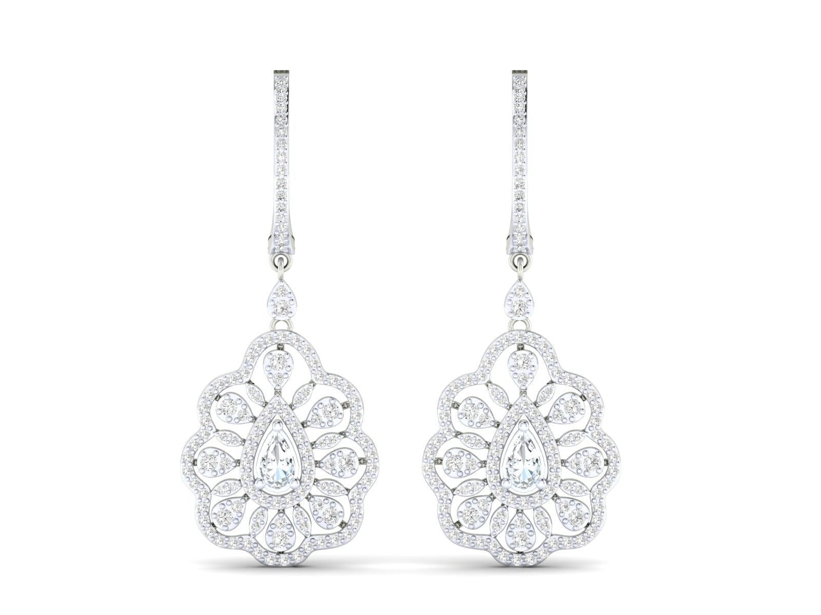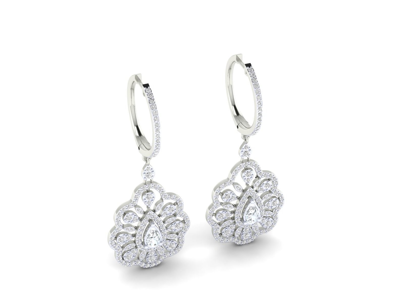 זוג עגילי יהלום טיפות בסגנון אגס, הכוללים 1.9 קראט מבריקות עגולות שנוצרו במעבדה.