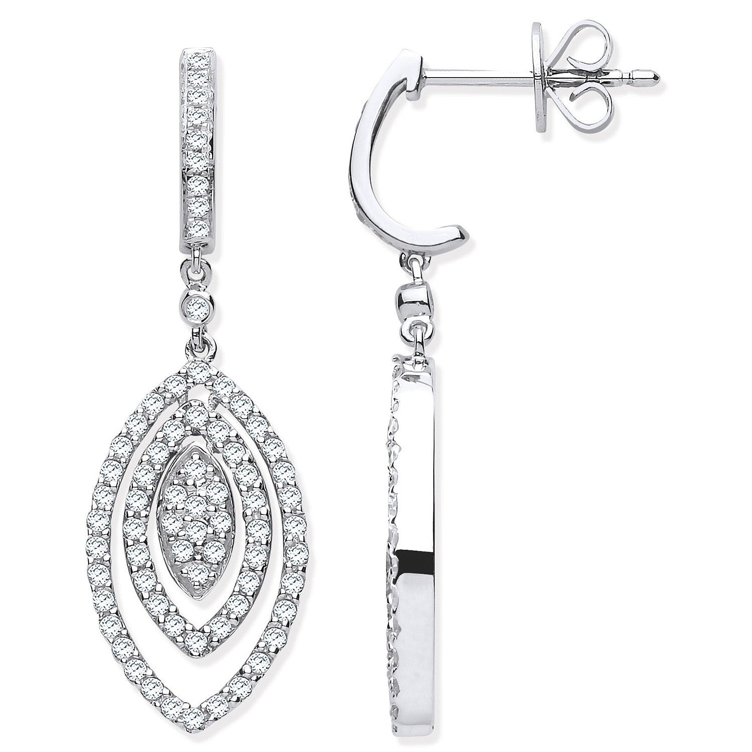 9ct White Gold 1ct Diamond Drop Earrings