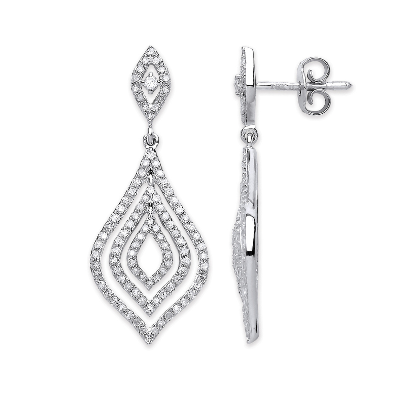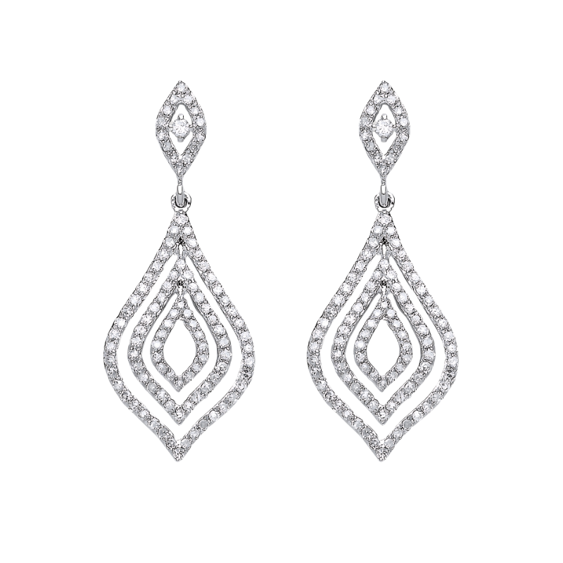 עגילי טיפת יהלומים 0.75 קראט בזהב לבן 18 קראט