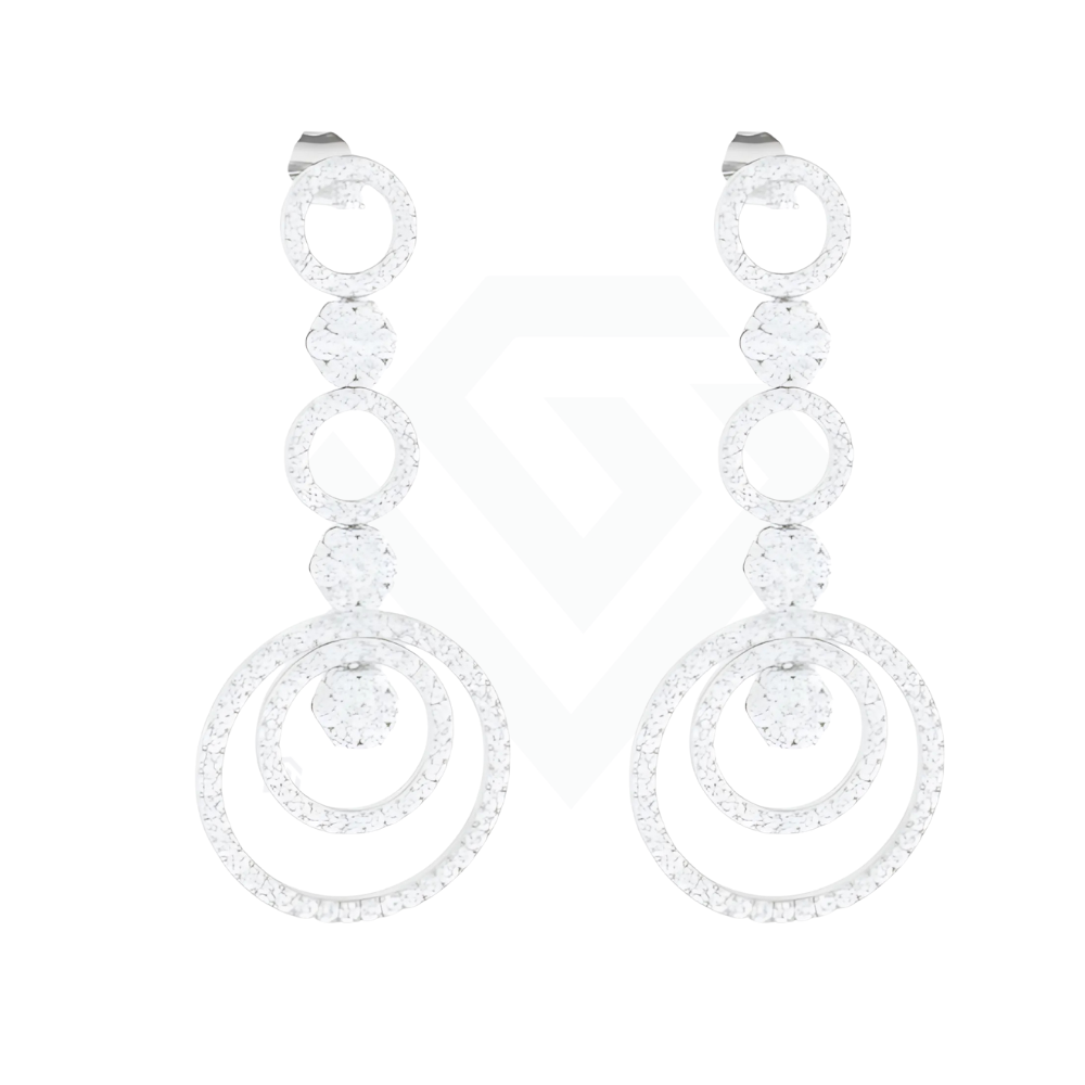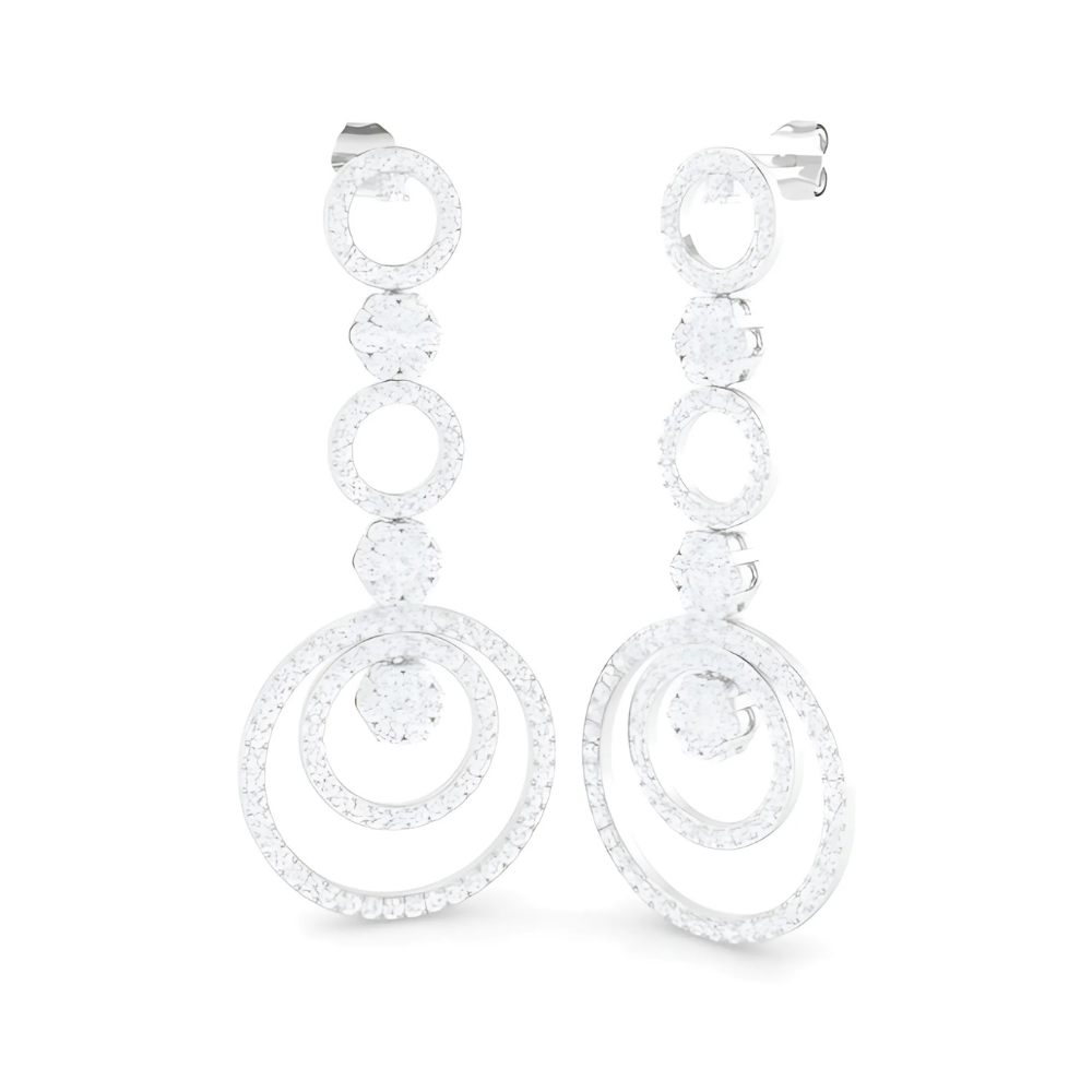 Dazzle with modern sophistication in these show-stopping 9k White Gold Circle Drop Earrings, adorned with 254 round brilliant lab-grown diamonds totalling an impressive 3.4ct. Designed in a bold cascading circle motif, these earrings offer fluid movement and radiant sparkle from every angle.