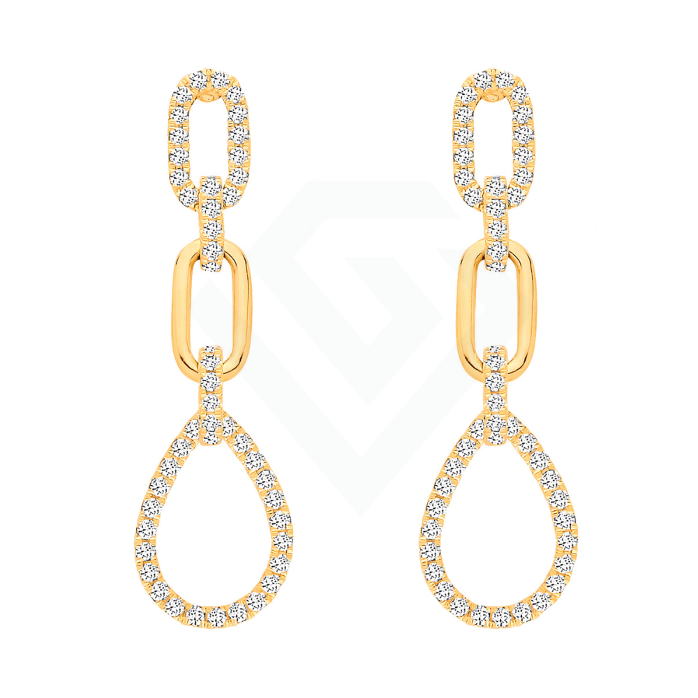 Elevate your style with these elegant 9ct Yellow Gold Diamond Drop Earrings, showcasing 0.80ct of dazzling brilliant-cut diamonds in a contemporary chain-link design. Featuring G/H colour and SI clarity diamonds, these statement earrings offer a refined sparkle and graceful movement—perfect for both day and evening wear.
