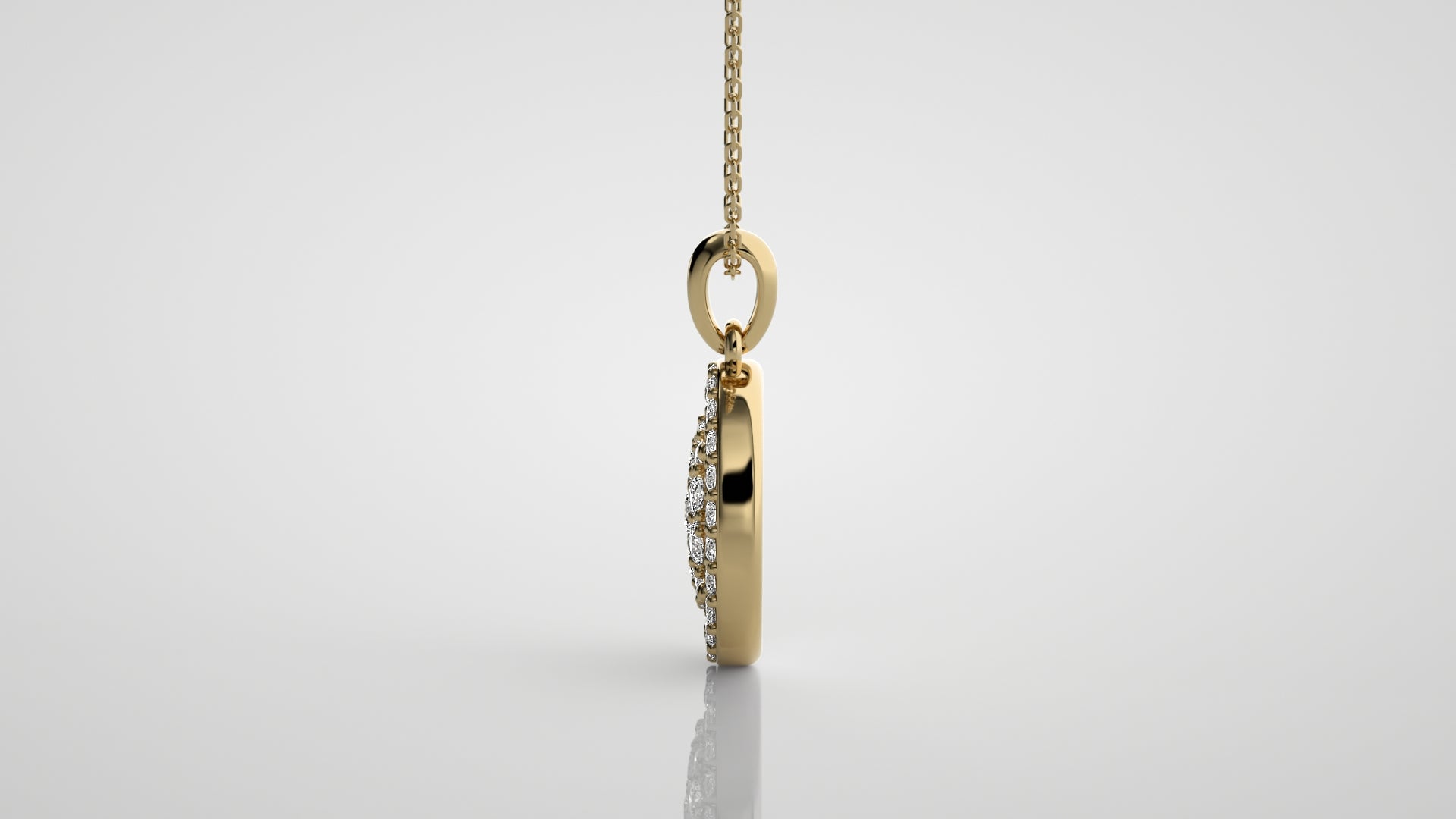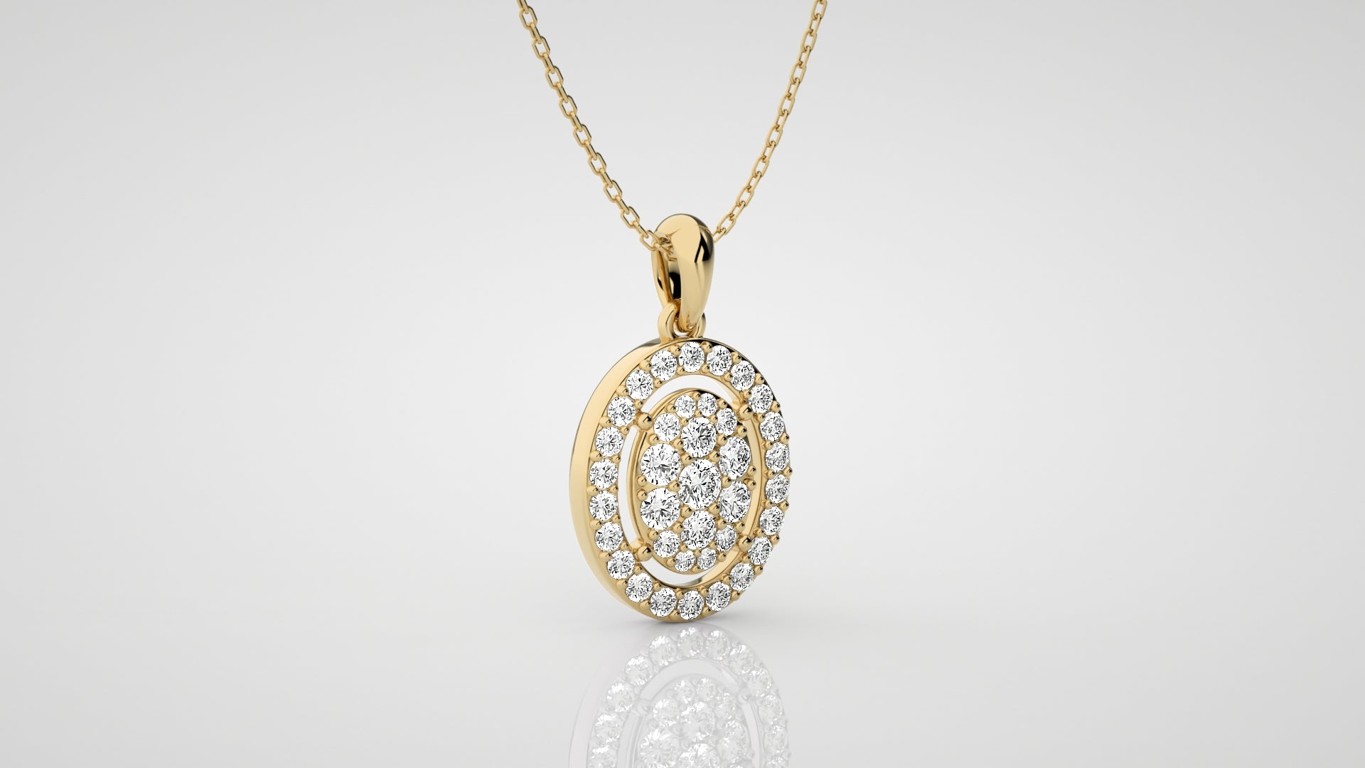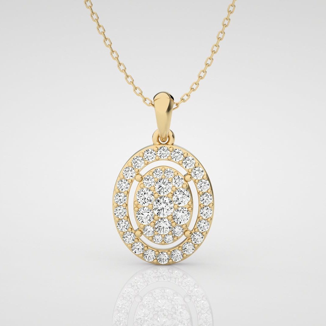 9ct Yellow Gold 1ct Oval Shape Halo Necklace. Featuring a stunning 1ct of Lab Grown Round Brilliants, this necklace sparkles with elegance.