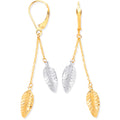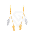 9ct Yellow & White Gold Leaf Drop Earrings: