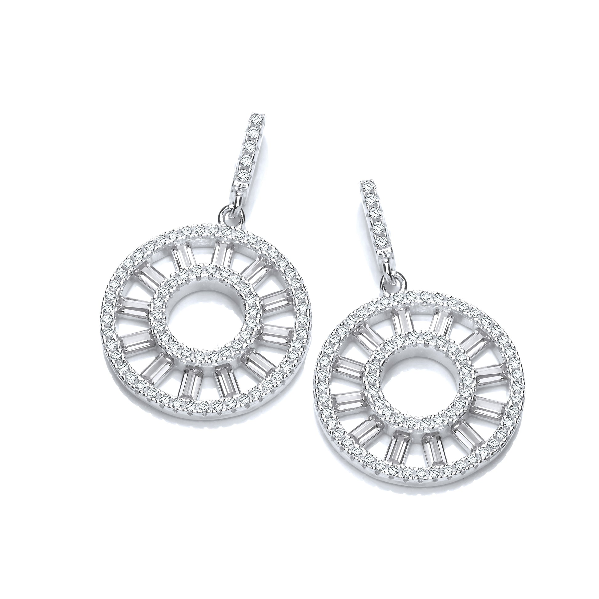 Sterling Silver Circle of Life Round & Baguette Cubic Zirconia Earrings