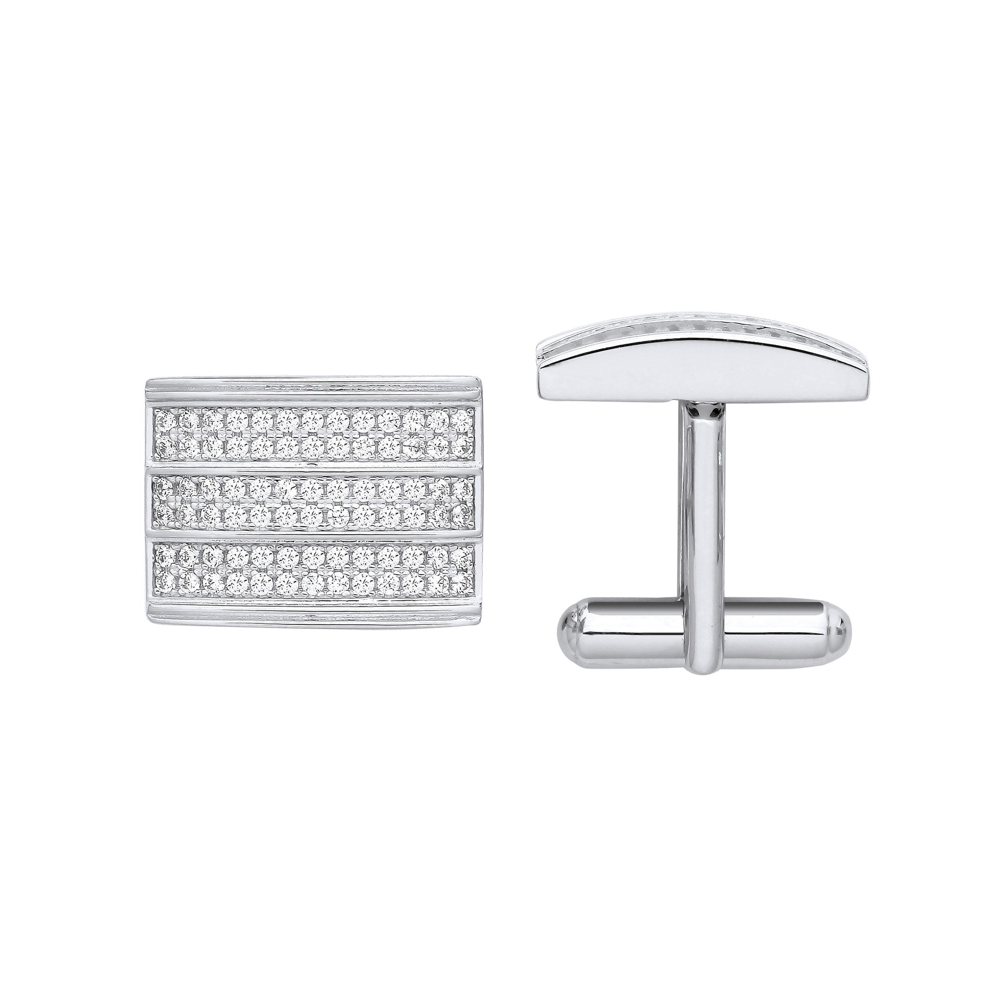 Sterling Silver Cubic Zirconia Rectangular Cufflinks