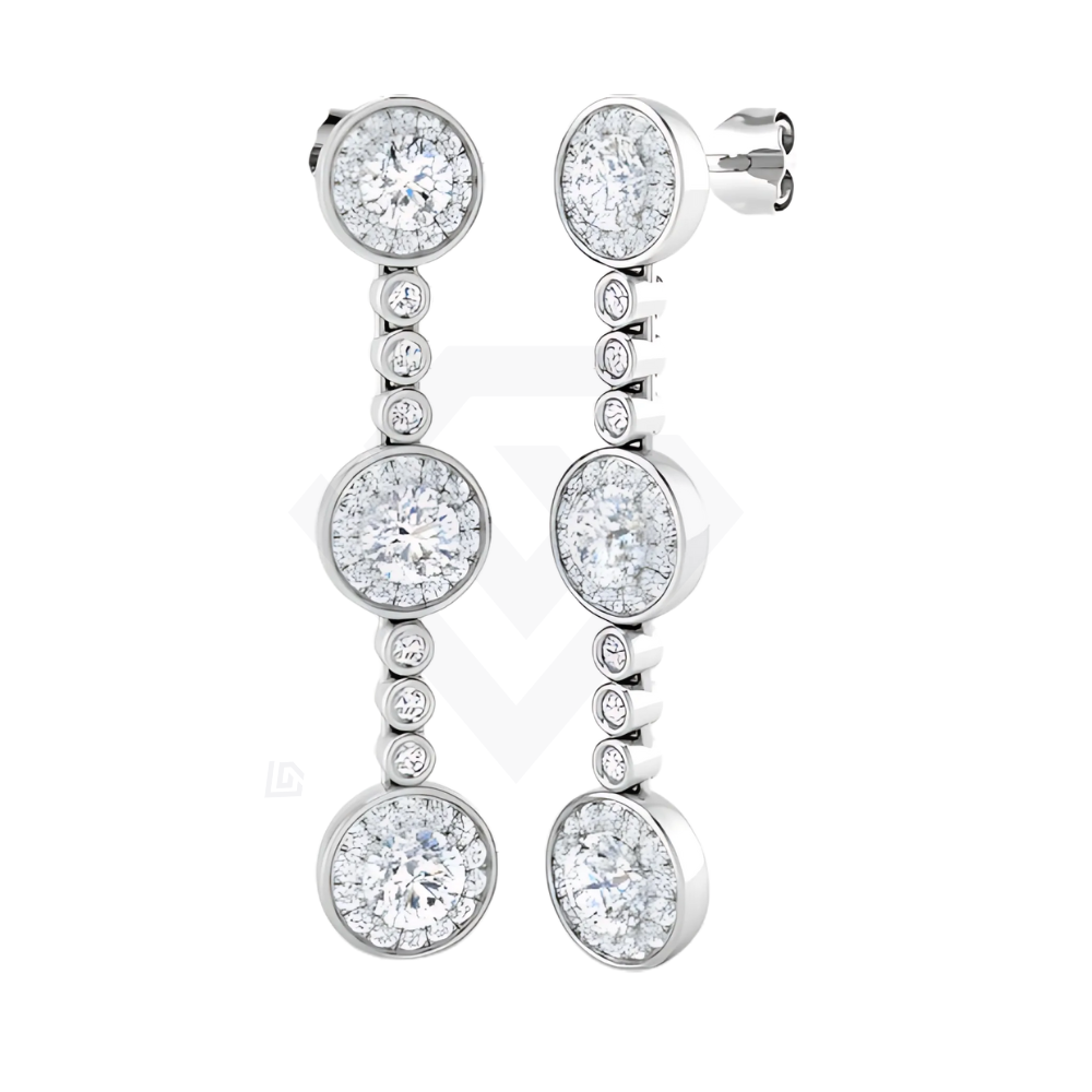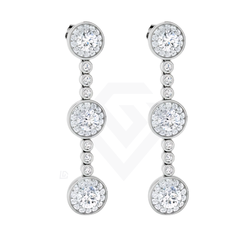 Elevate any outfit with timeless glamour and sophistication with these exquisite 9K White Gold Round Cluster Drop Earrings, featuring a dazzling triple halo design. Each earring showcases a captivating cascade of lab-grown round brilliant diamonds (CVD, FVS) – 102 stones in total, delivering a breathtaking 2.85ct total gem weight that radiates luxury.