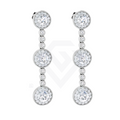 Expertly crafted in solid 9k white gold and weighing approximately 5.4g, these earrings combine elegance with exceptional comfort and wearability. The design features three graduated clusters connected by individually set round stones, creating graceful movement and light-catching brilliance with every turn.